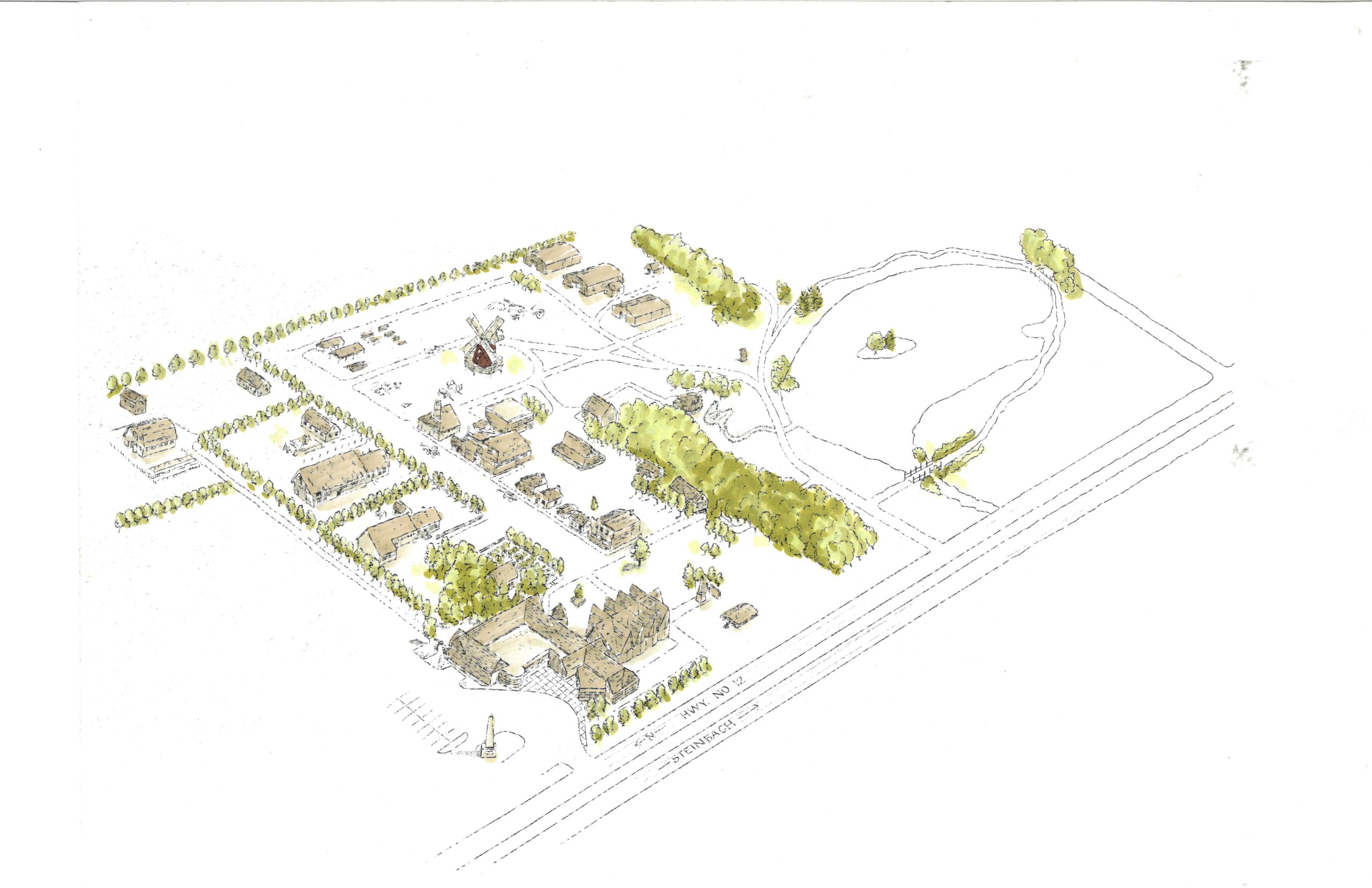 Mennonites used windmills to grind grains and drain marshes throughout their history in Europe. The first windmill in Steinbach was built in 1877. A replica was built at the museum in 1972 but destroyed by fire in 2000. The current windmill was rebuilt in 2001.